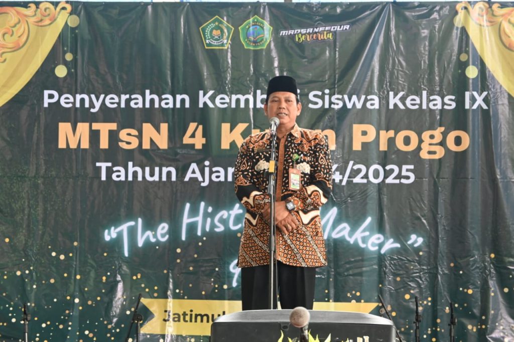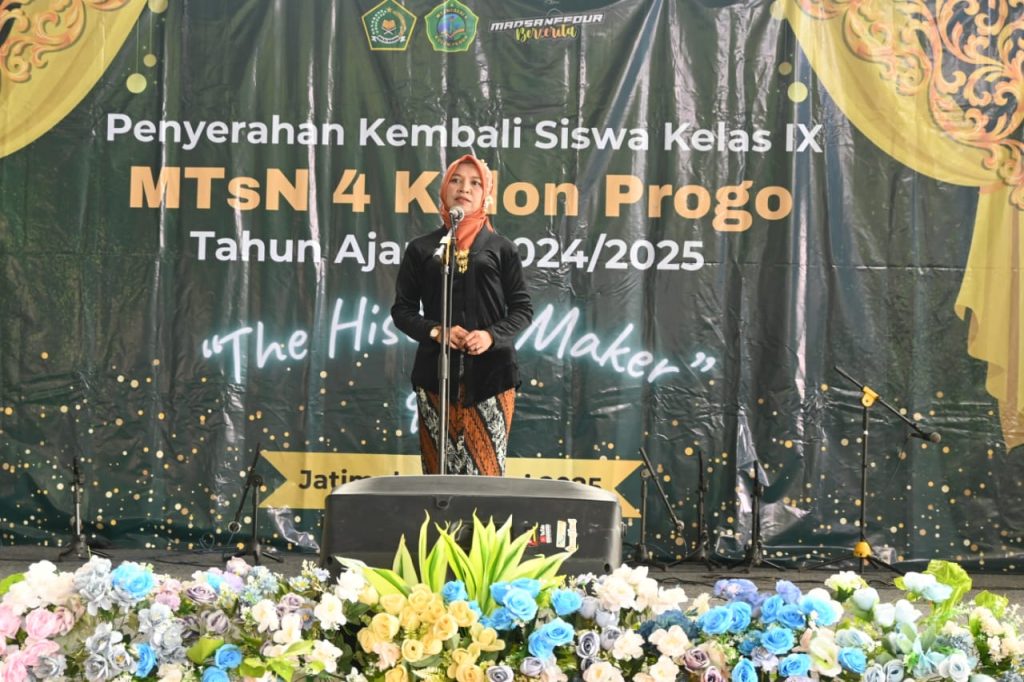 Kulon Progo (MTsN 4 Kulon Progo) Sukacita sekaligus haru penuhi GOR Tunas Menoreh, Rabu (11/5/2025) dalam acara perpisahan dan pelepasan siswa kelas IX Angkatan 2025. Acara bertajuk “The History Maker” ini dihadiri oleh Kasi Dikmad Kementerian Agama Kulon Progo didampingi pengawas madrasah, komite, perangkat kalurahan, kepala TK/SD, dewan guru, orang tua/wali murid, serta seluruh siswa kelas IX yang akan melanjutkan perjalanan pendidikan ke jenjang yang lebih tinggi.