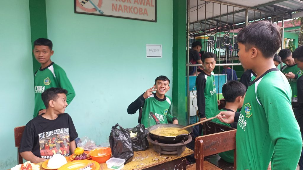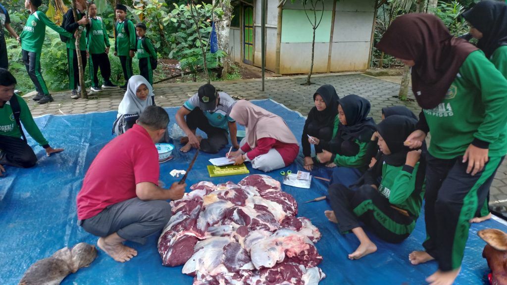 Usai penyembelihan, sebanyak 47 kelompok mendapatkan bagian daging yang kemudian diolah menjadi berbagai menu. Guru yang bertugas berkeliling untuk memantau dan memberikan penilaian proses memasak daging juga menilai cita rasa masakan. (siw)