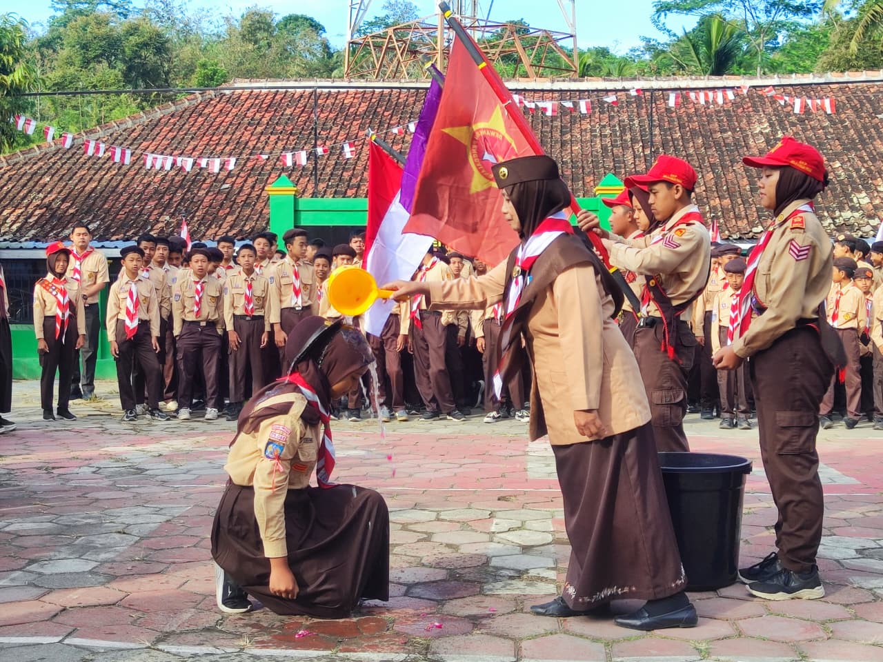 Waka Kesiswaan yang juga pembina pramuka, Lukman Khakim SPd sampaikan makna simbolis di balik tradisi menyiram air bunga saat pelantikan. “Sebenarnya itu ungkapan rasa syukur, pencucian diri, dan harapan untuk kesuksesan serta keberkahan dalam menjalankan tugas yang diemban,” ujarnya. Ia pun menambahkan filosofi bunga sebagai lambang keindahan, keharuman dan harapan akan keberlangsungan yang baik. (siw)