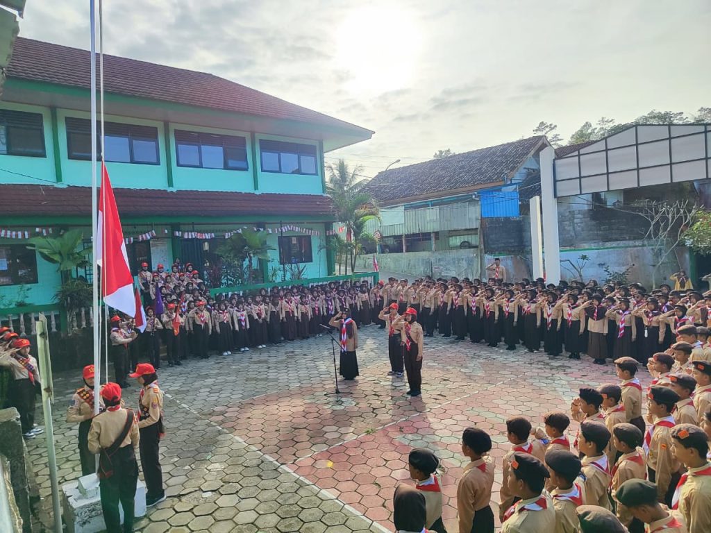 Kulon Progo (MTsN 4 Kulon Progo) peringati Hari Pramuka, MTsN 4 Kulon Progo adakan upacara bendera dengan pembina upacara Susi Retnowati, S.Pd. Hadir mengikuti upacara, seluruh siswa MTsN 4 Kulon Progo sebagai anggota pramuka beserta guru dan pegawai madrasah setempat (14/8/2025).