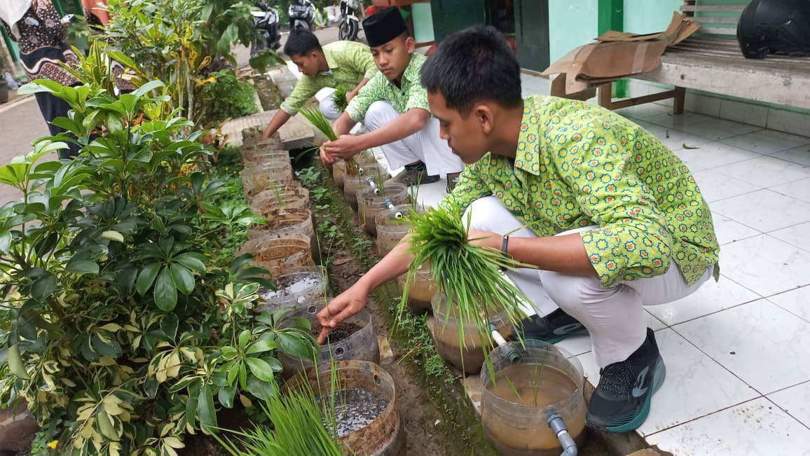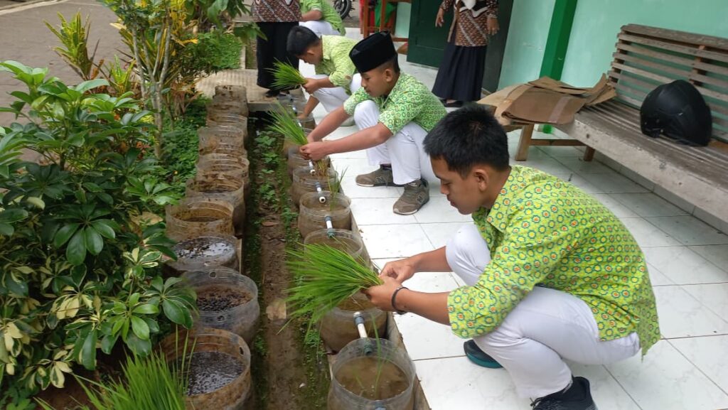 Kreatif! MTsN 4 Kulon Progo Tanam Padi dari Bekas Wudu