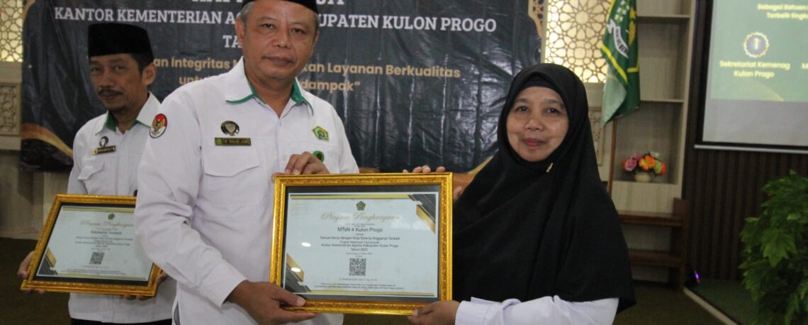 Kulon Progo (MTsN 4 Kulon Progo) MTsN 4 Kulon Progo kembali raih predikat nilai kinerja anggaran terbaik 2025. Penghargaan tersebut diserahkan oleh Kepala Kantor Kementerian Agama Kabupaten Kulon Progo HM Wahib Jamil, S.Ag. M.Pd. kepada kepala MTsN 4 Kulon Progo, di kantor PLHUT kemenag setempat (303/2026).